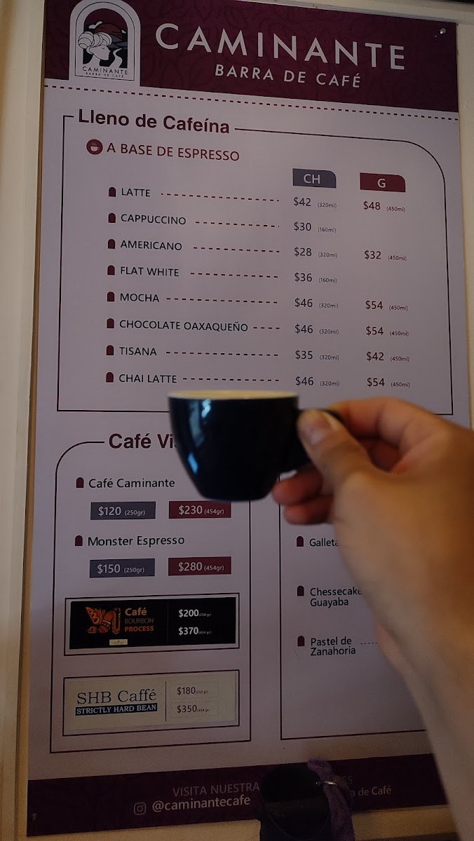 The menu extends beyond coffee, allowing tea lovers to indulge in flavorful choices like Herbal Explosión or Masala Chai, all priced at a reasonable MX$36. With an enticing Café & Té ilimitado option for just MX$70, it's perfect for those looking to savor a variety of selections.